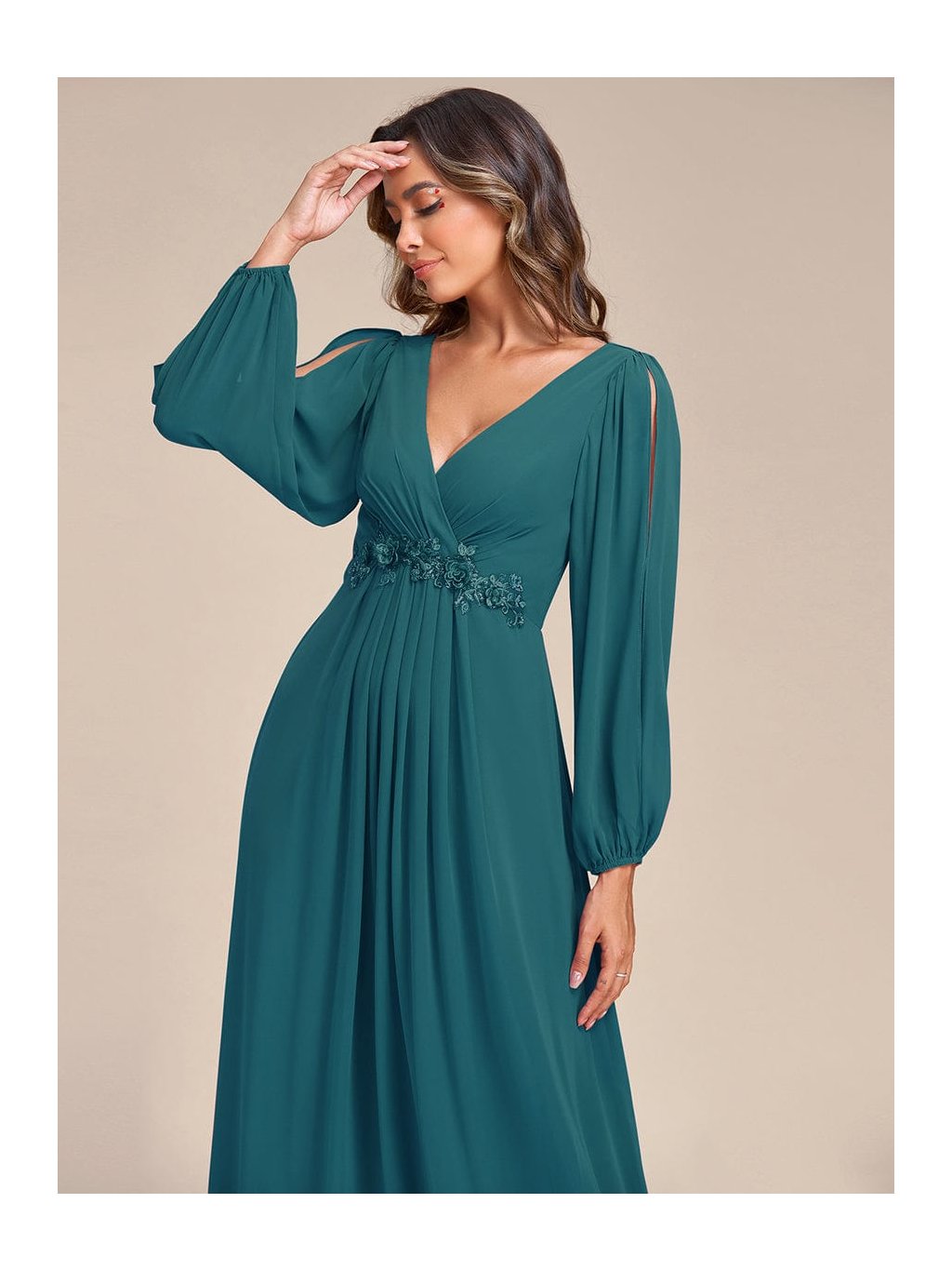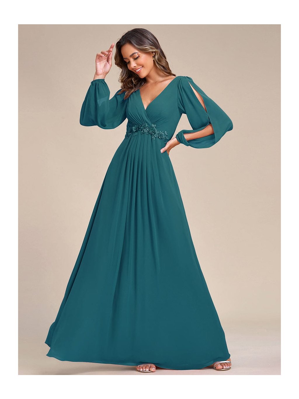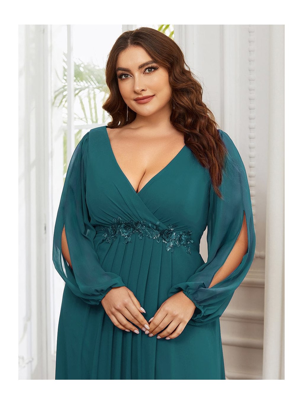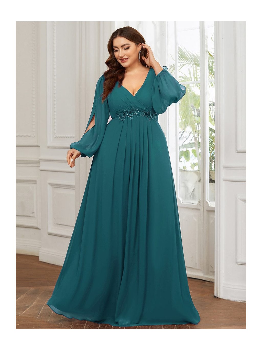 Nádherné společenské šaty s dlouhým prostřiženým rukávem a krajkovou výšivkou v živůtku. Na první pohled jednoduché šaty jsou zároveň zajímavé vkusnými detaily. Skvěle se v nich budete cítit na plesech, na galavečerech či jiných kulturních akcích.