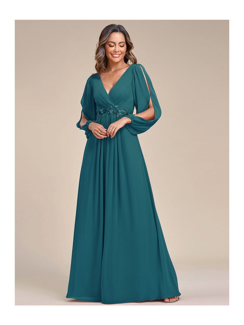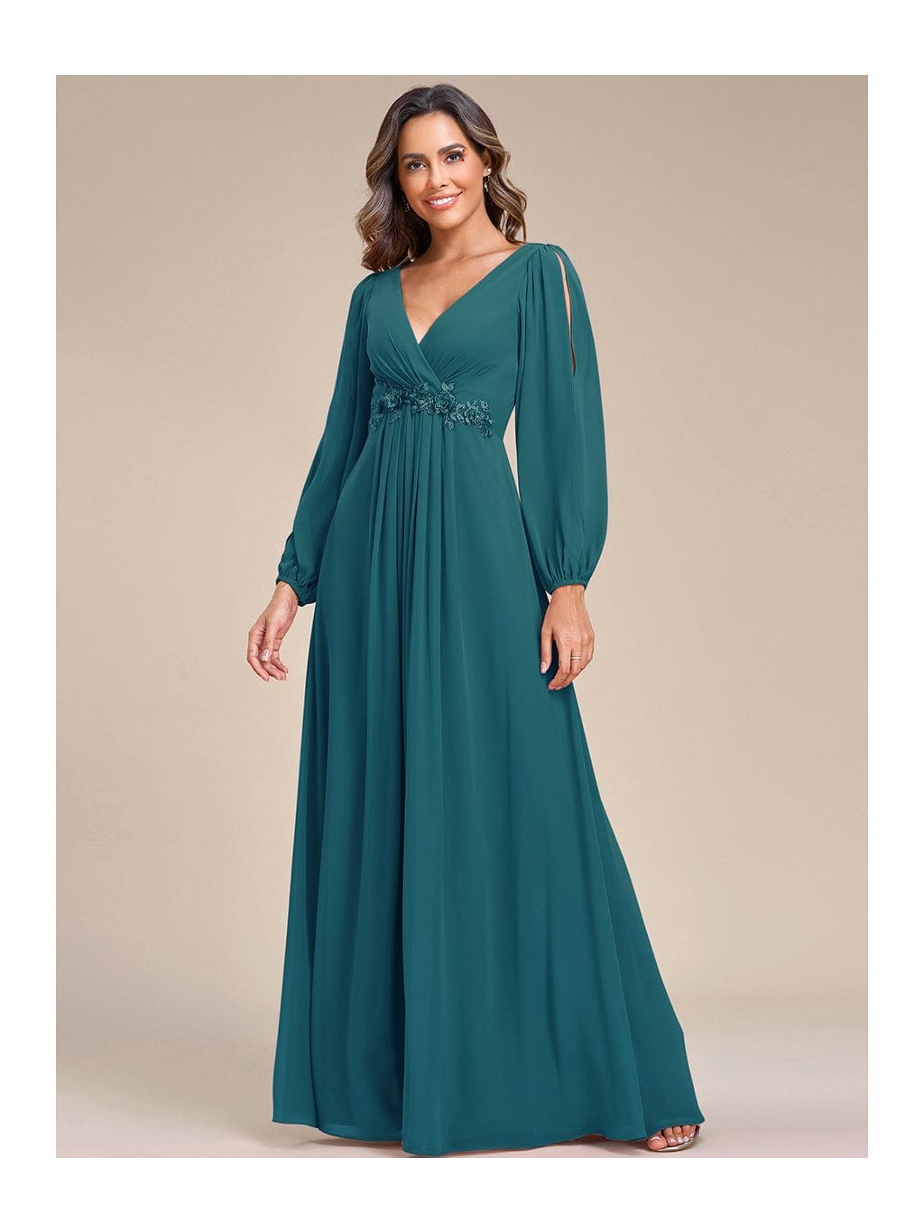 Dlouhé tyrkysové šaty s krajkovou květinovou výšivkou