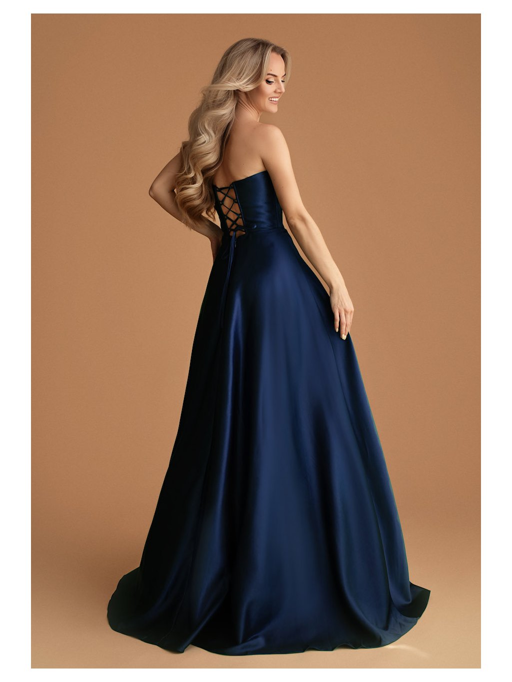 Klasická elegance v moderním provedení. Tyto modré šaty vynikají nejen svým luxusním saténovým povrchem, ale především korzetovým živůtkem, který opticky zvýrazní pas a dekolt. Hladká sukně do A lichotí každému typu postavy a vytváří efektní siluetu při pohybu. Zadní šněrování zajišťuje přesné padnutí šatů a dodává modelu lehce romantický nádech. Jsou ideální volbou na ples i slavnostní večer.