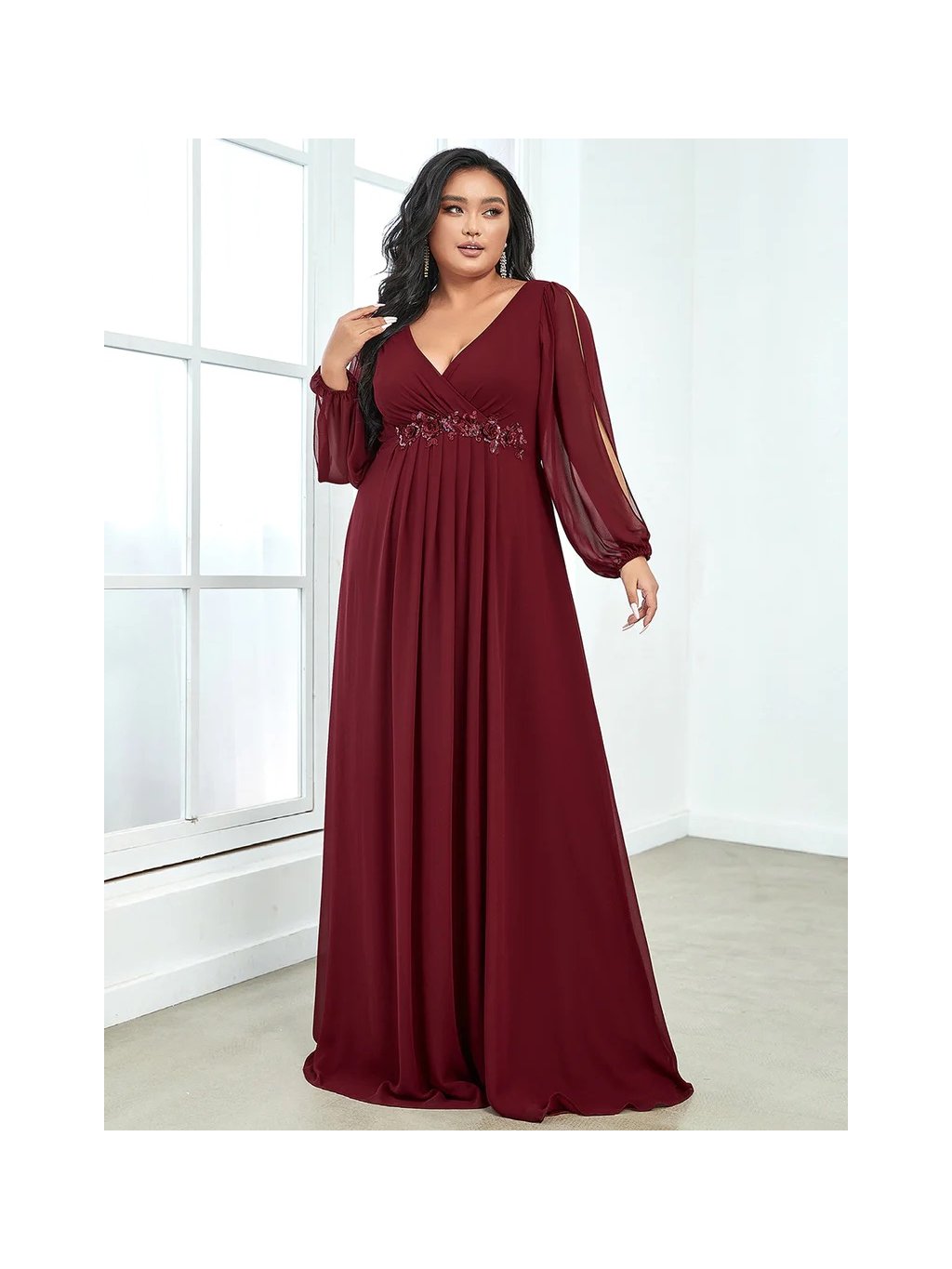 Dlouhé společenské šaty s prostřiženým rukávem