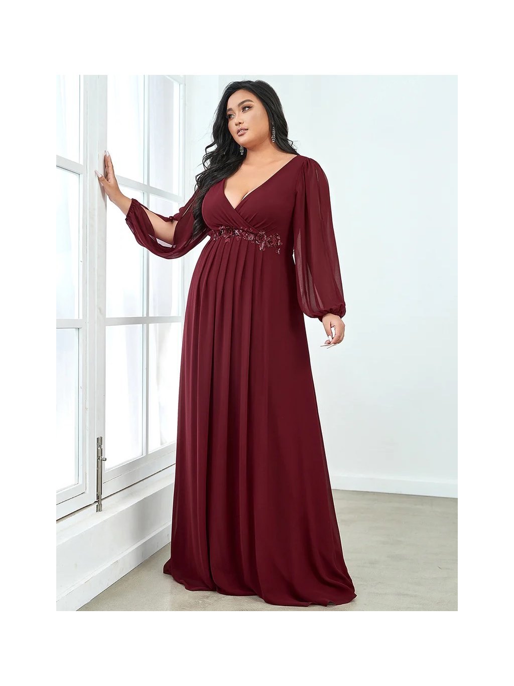 Vínové elegantní společenské šaty s ozdobnou krajkou v pase