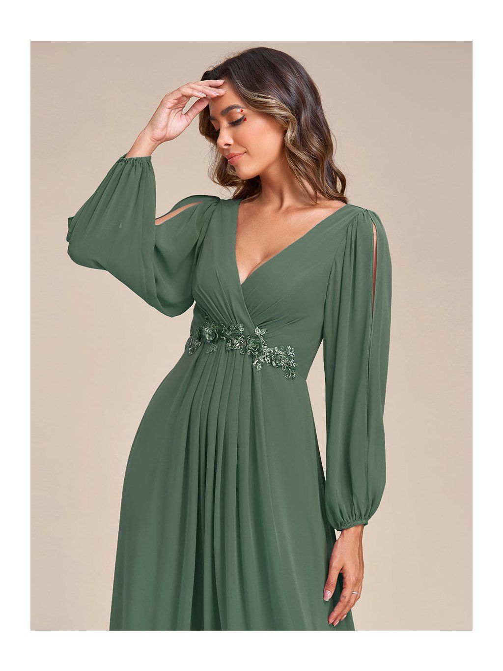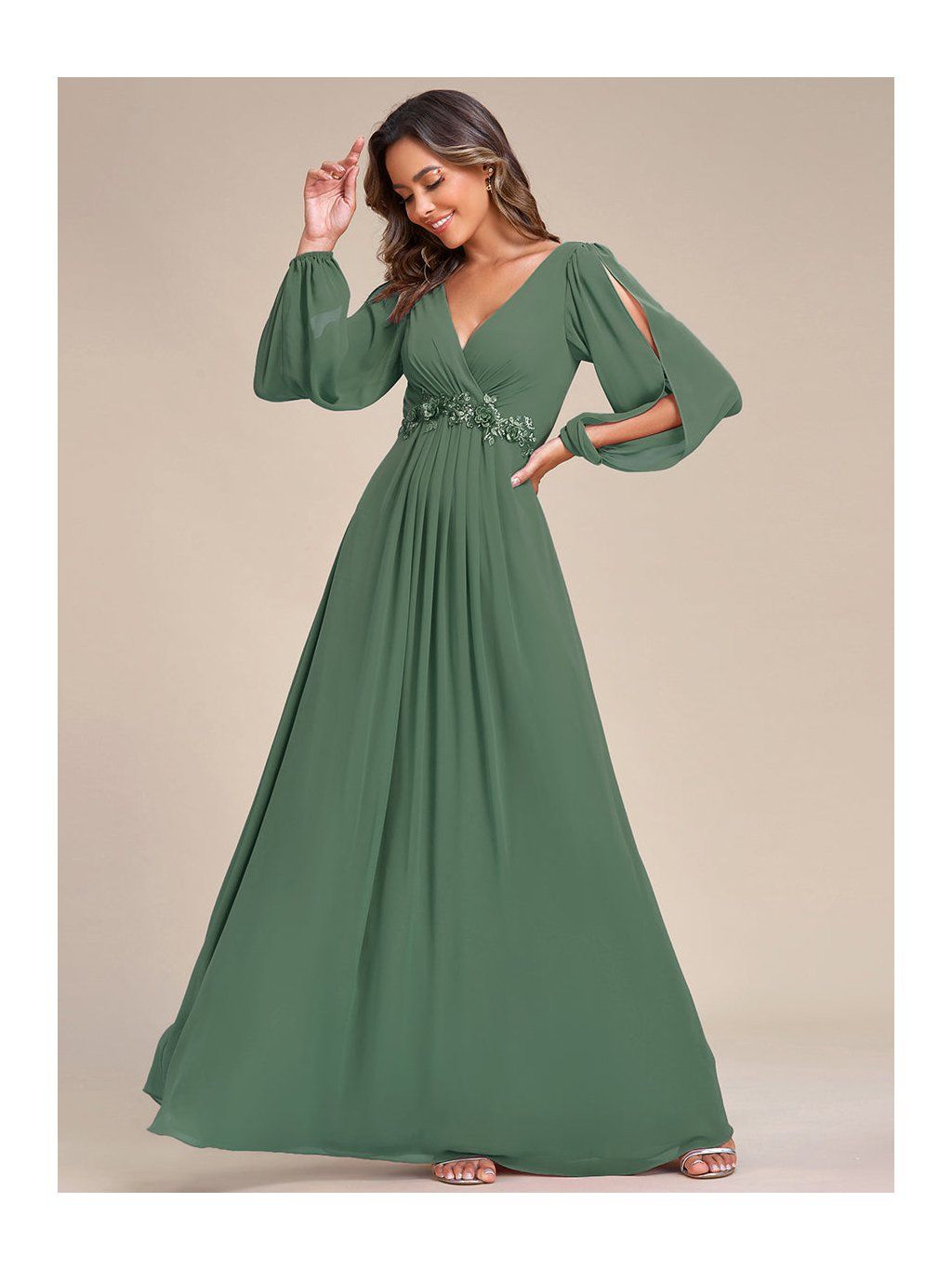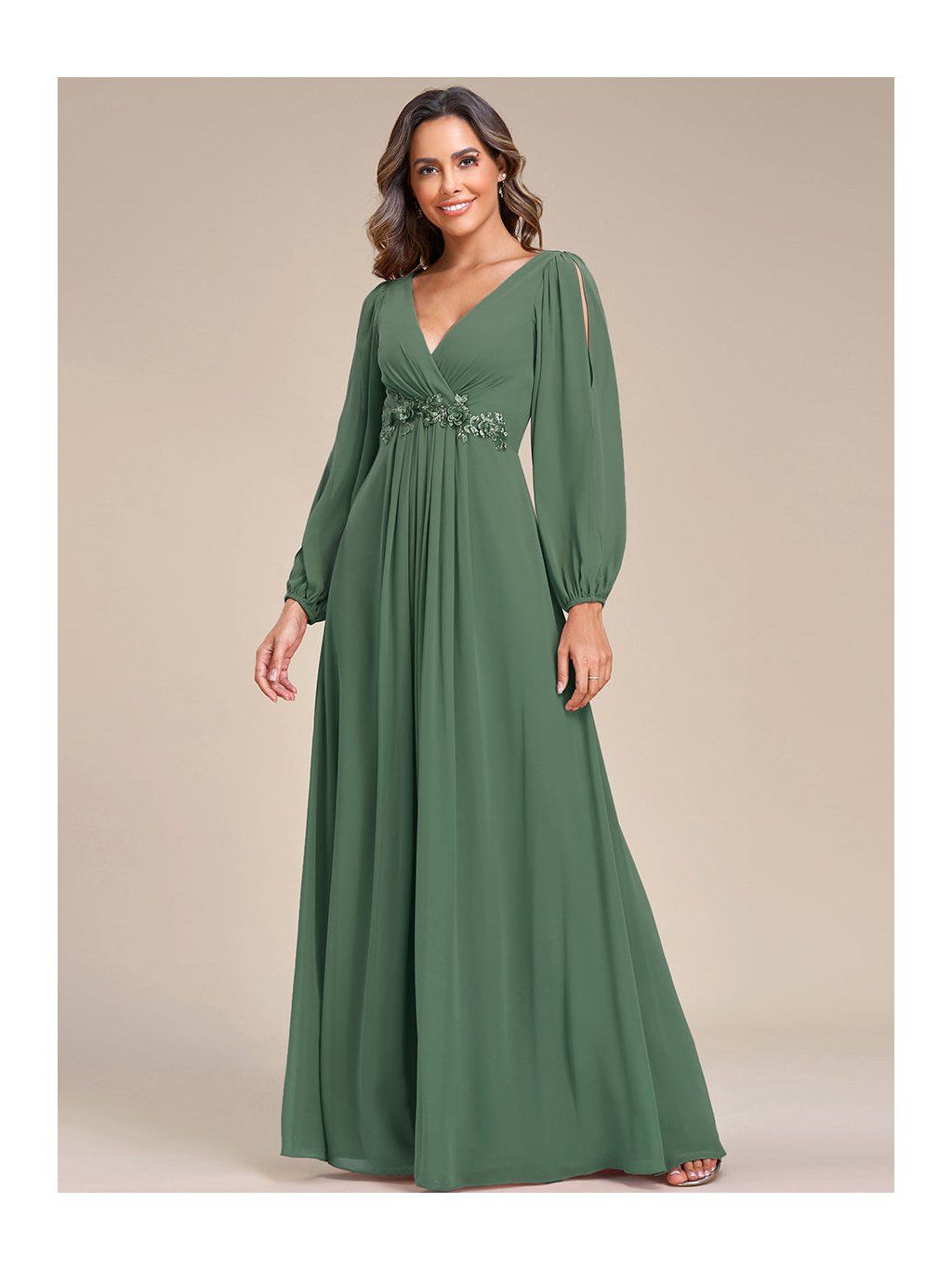 Dlouhé zelené šifonové šaty s rukávy na svatbu
