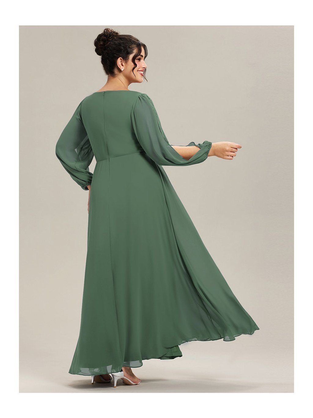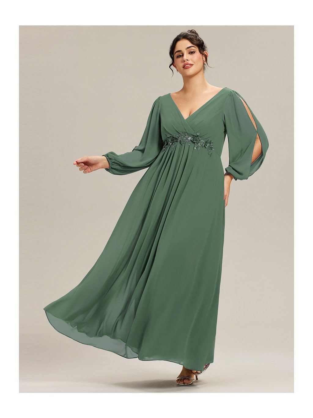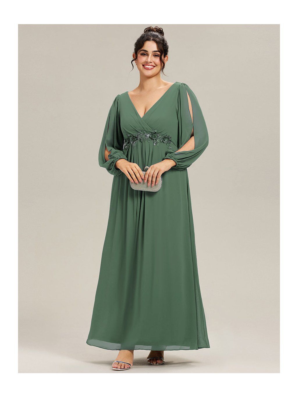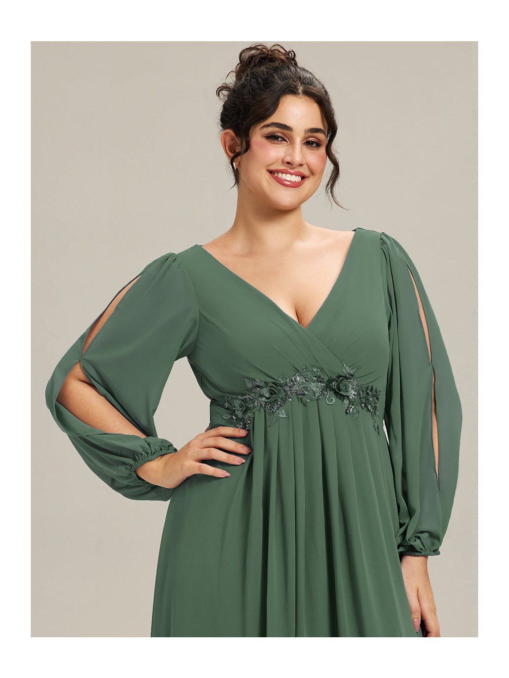 Dlouhé zelené šifonové šaty s rukávy na svatbu