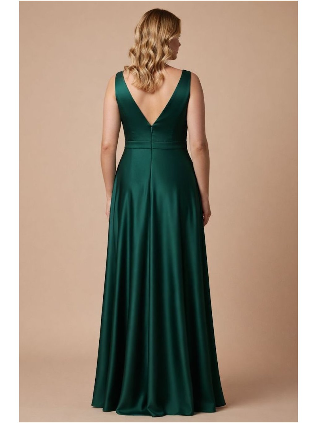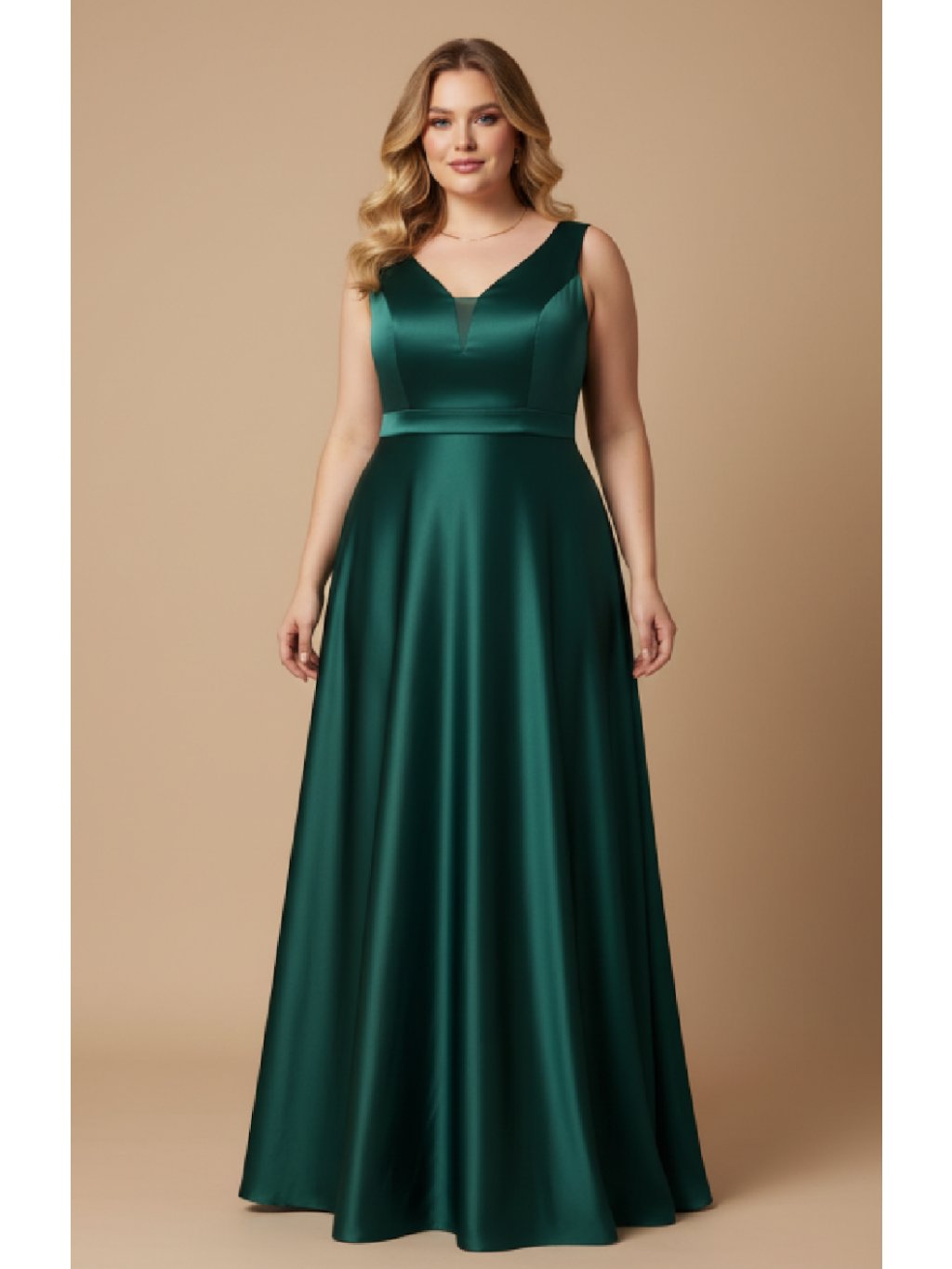 Tyto dlouhé šaty v zeleném tónu působí velmi jemně a žensky. Véčkový výstřih s decentní síťovanou vsadkou vytváří vyvážený dojem a nechává vyniknout dekolt bez přílišné výraznosti. Hladký živůtek plynule navazuje na pas a přirozeně formuje siluetu. Dlouhá sukně se lehce rozšiřuje a krásně splývá při chůzi, což zajišťuje komfort i elegantní pohyb. Model je ideální volbou na maturitní plesy, galavečery nebo svatby.