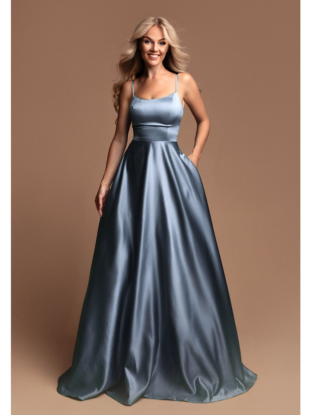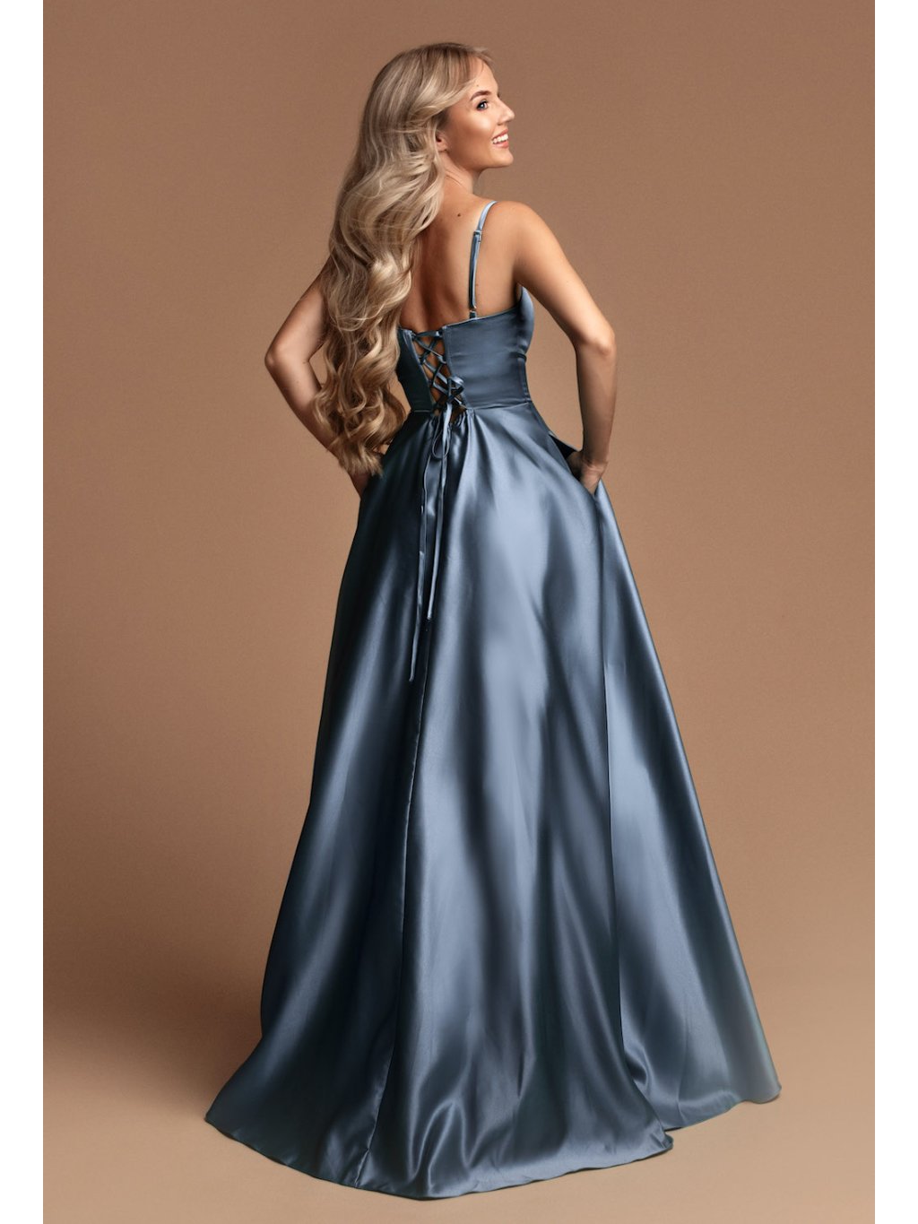 Jednoduché a přesto úchvatně elegantní šaty, které Vás na první pohled zaujmou spojením noblesy s praktičností. Šněrování na zádech Vám umožní si šaty přizpůsobit Vaší postavě a dosáhnout tak perfektně padnoucího střihu, zatímco díky lesklé hladké saténové látce a kolové sukni se budete cítit jako princezna, ať už se chystáte na jakoukoli společenskou událost!