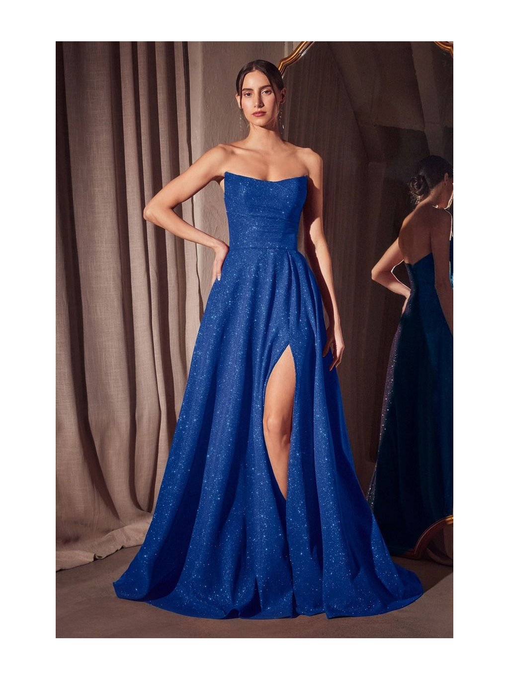 V těchto královsky modrých šatech nezůstanete bez povšimnutí. Srdíčkový živůtek bez ramínek zvýrazní linii ramen i dekoltu, zatímco třpytivý materiál zachytí každý odlesk světla kolem Vás. Bohatá sukně s rozparkem působí vzdušně a efektně při pohybu. Šněrování na zádech nejen zdobí, ale také pomáhá dokonale vytvarovat siluetu. Tyto šaty jsou stvořené pro plesy, galavečery i výjimečné události, kdy chcete být nezapomenutelná.