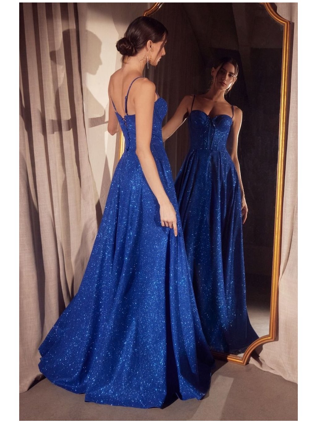 Královsky modré třpytivé plesové šaty jsou dokonalou volbou pro večer, kdy chcete zaujmout hned na první pohled. Korzetový živůtek s jemným vyztužením krásně zvýrazní dekolt, zatímco úzká ramínka dodají šatům lehkost. Bohatá sukně s výrazným leskem působí majestátně a při každém kroku vytváří okouzlující efekt. Jedná se o model jak stvořený na maturitní ples.