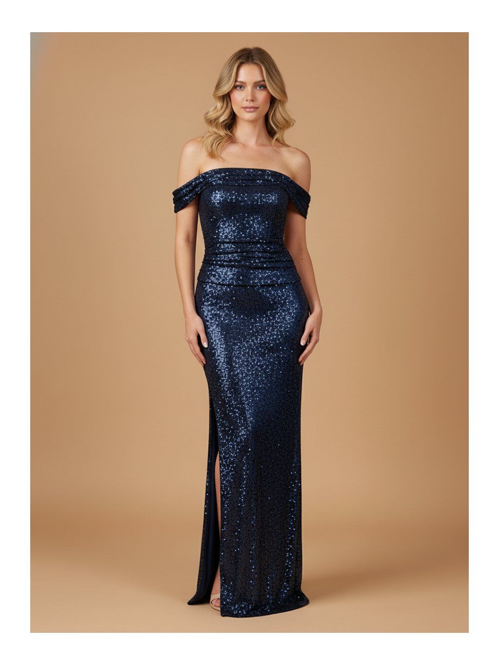 Tyto tmavě modré flitrové šaty v sobě mají něco nenápadně přitažlivého. Neoslní křiklavostí, ale spíš hloubkou barvy a jemným třpytem, který se mění s každým pohybem a světlem. Spadlý výstřih nechává vyniknout linii ramen a působí velmi žensky. Přiléhavý střih kopíruje postavu a díky jemnému řasení v oblasti pasu vytváří elegantní siluetu. Úzká sukně s decentním rozparkem dodává modelu rafinovanost a zároveň umožňuje pohodlný pohyb. Šaty se skvěle hodí na večírky, plesy, oslavy a slavnostní večeře.
