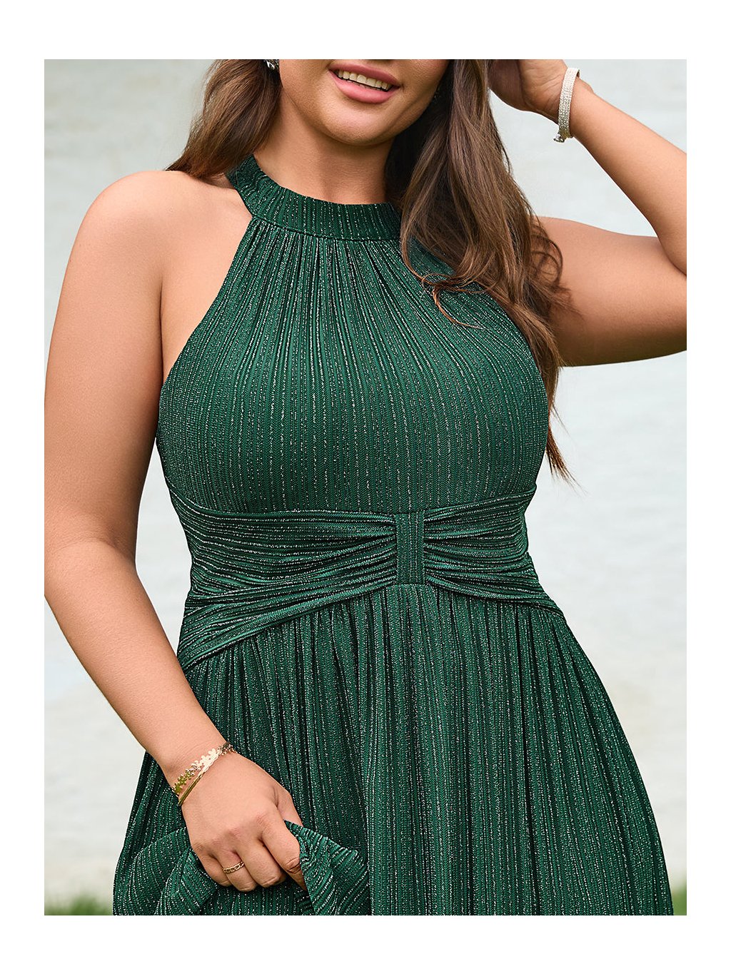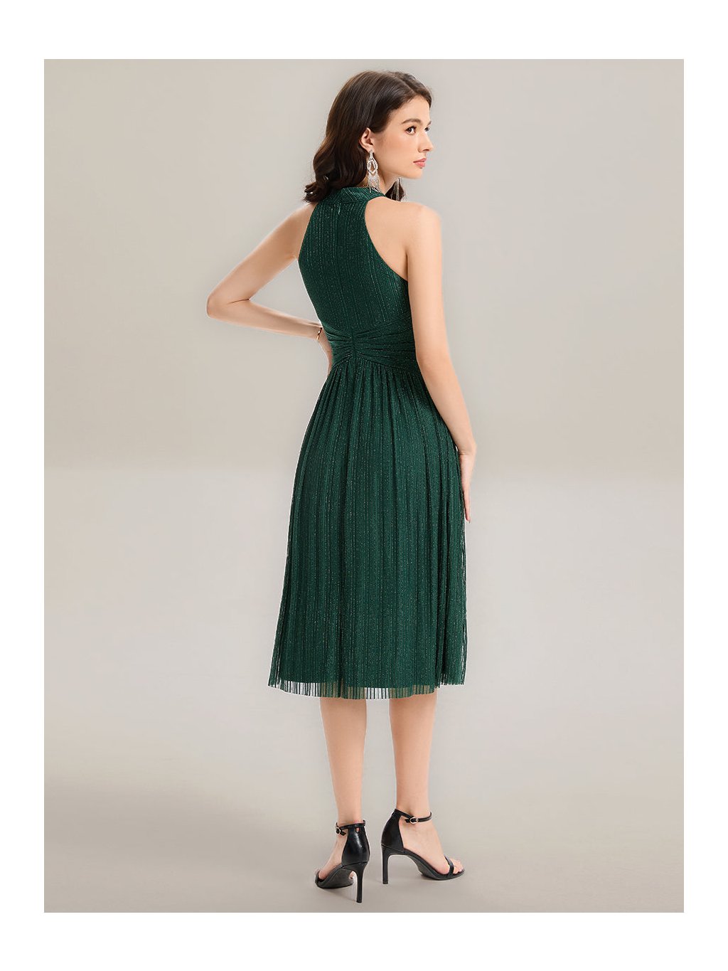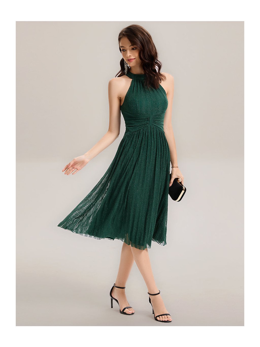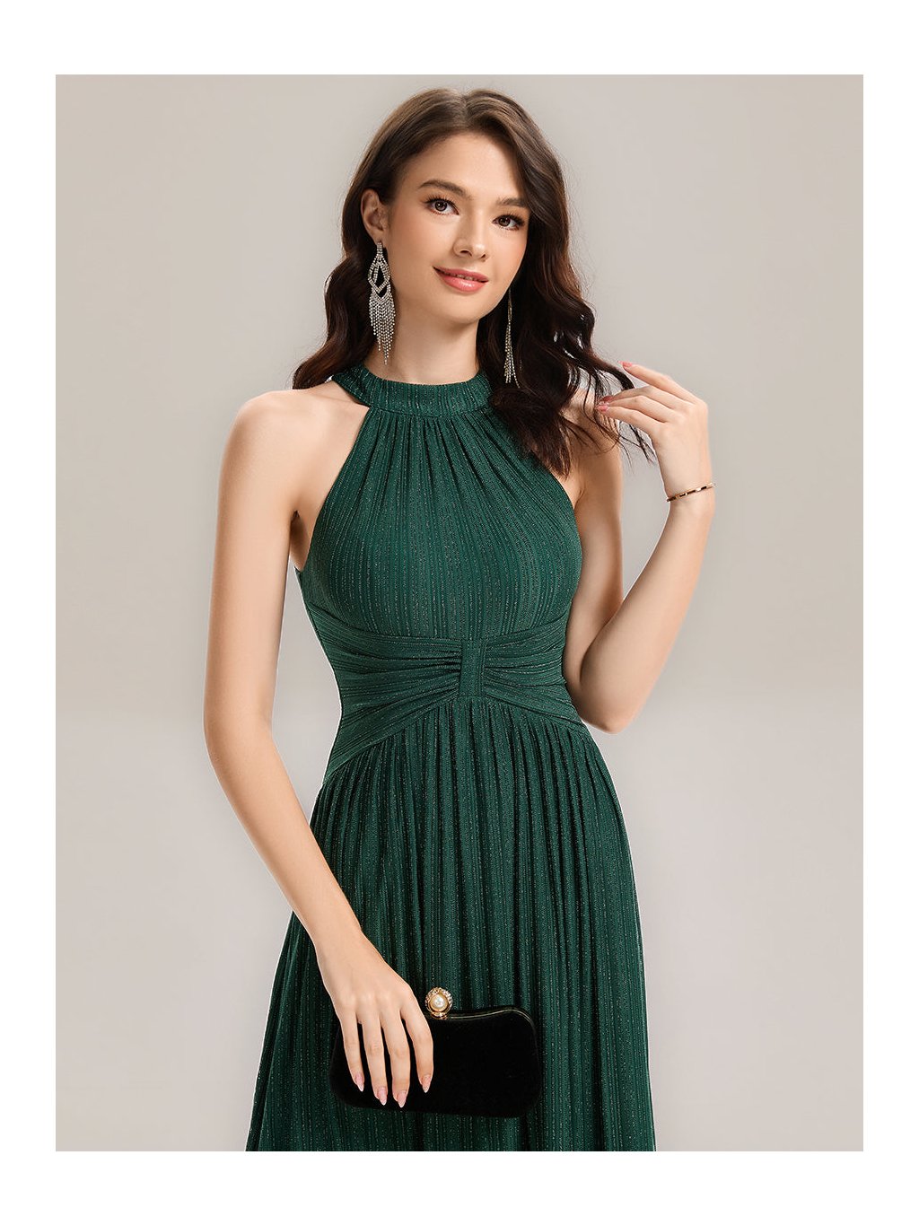 Plisované zelené šaty pro svatební hosty s halter výstřihem