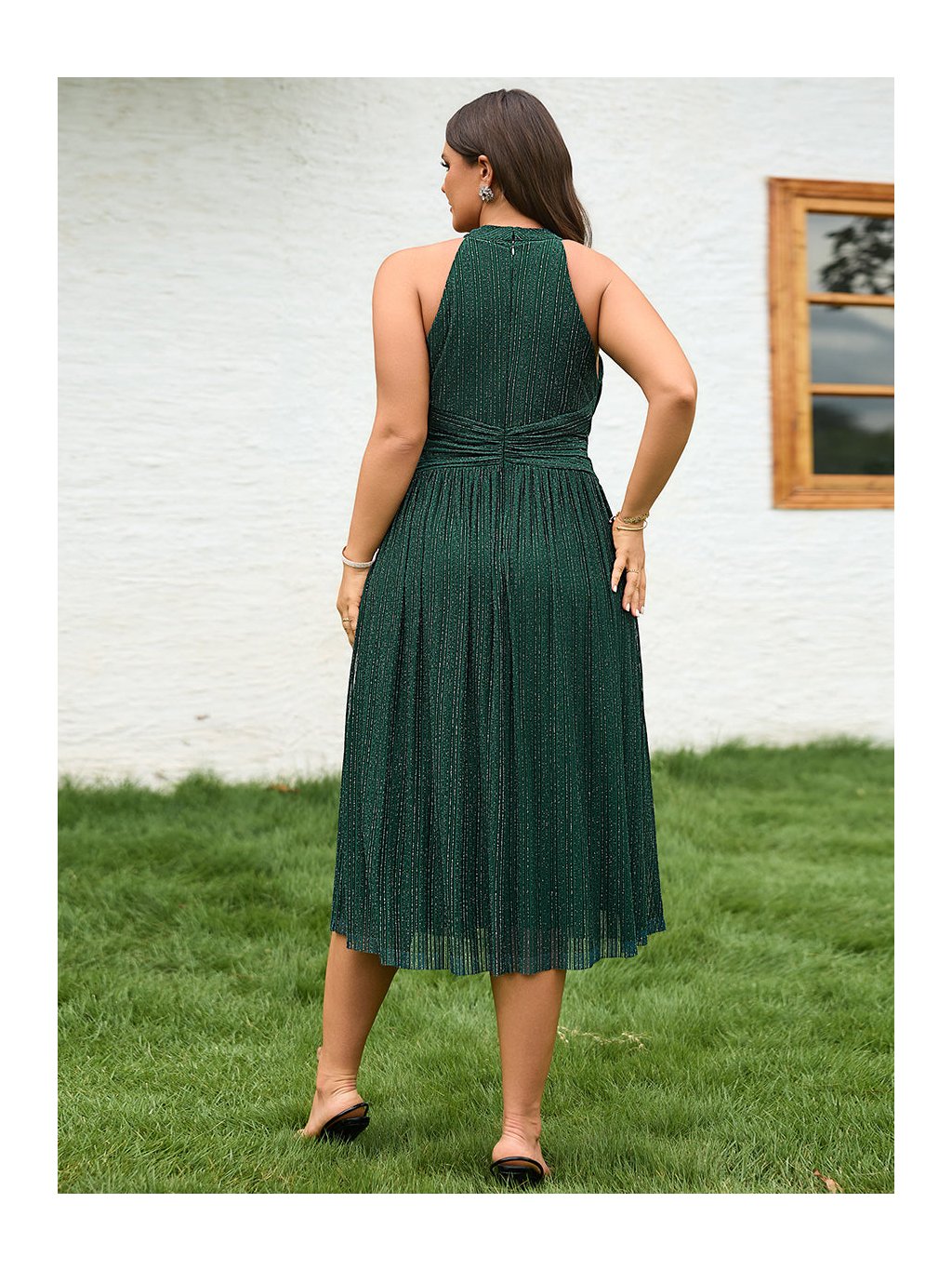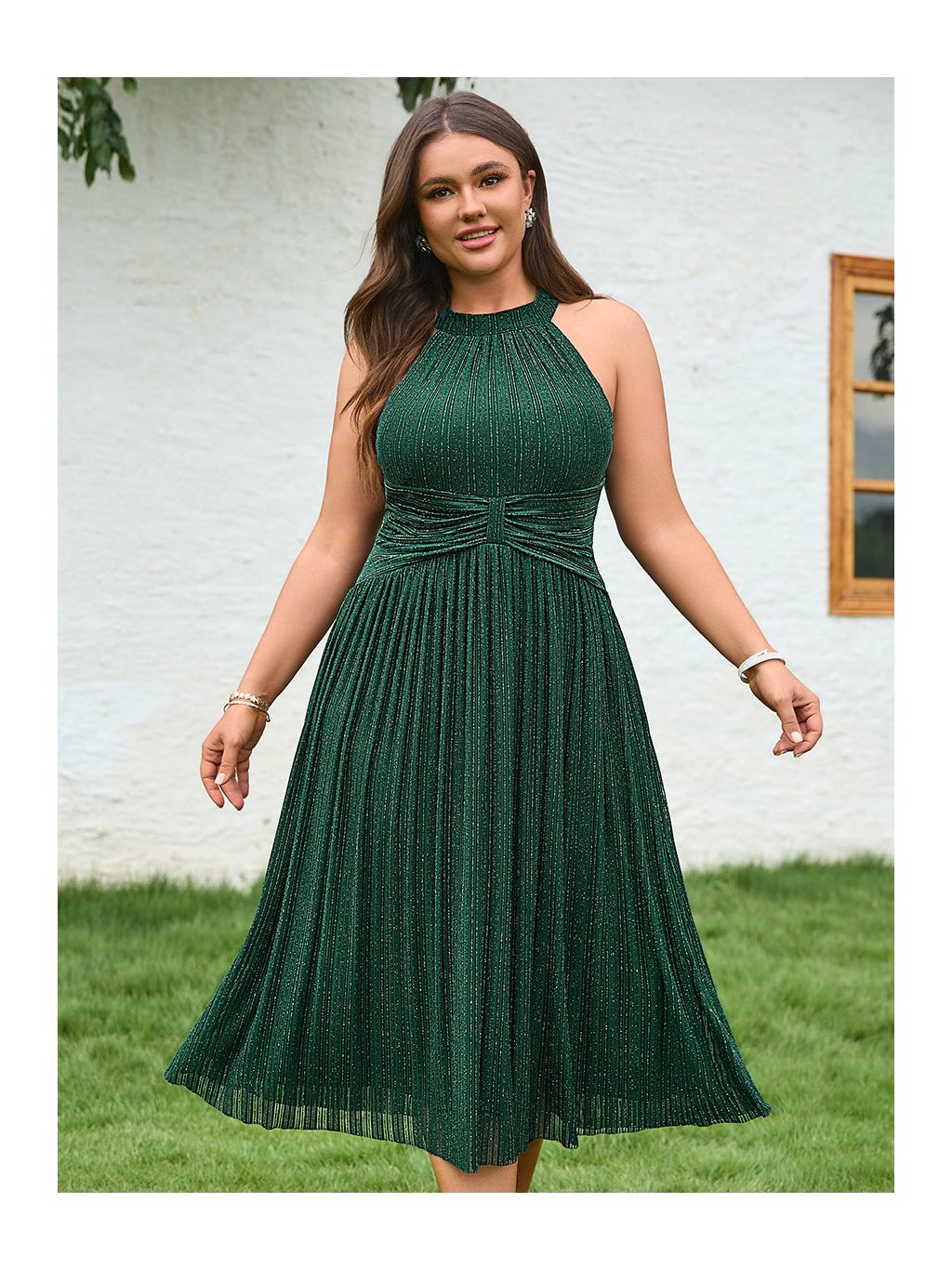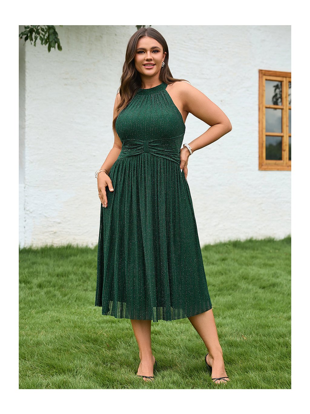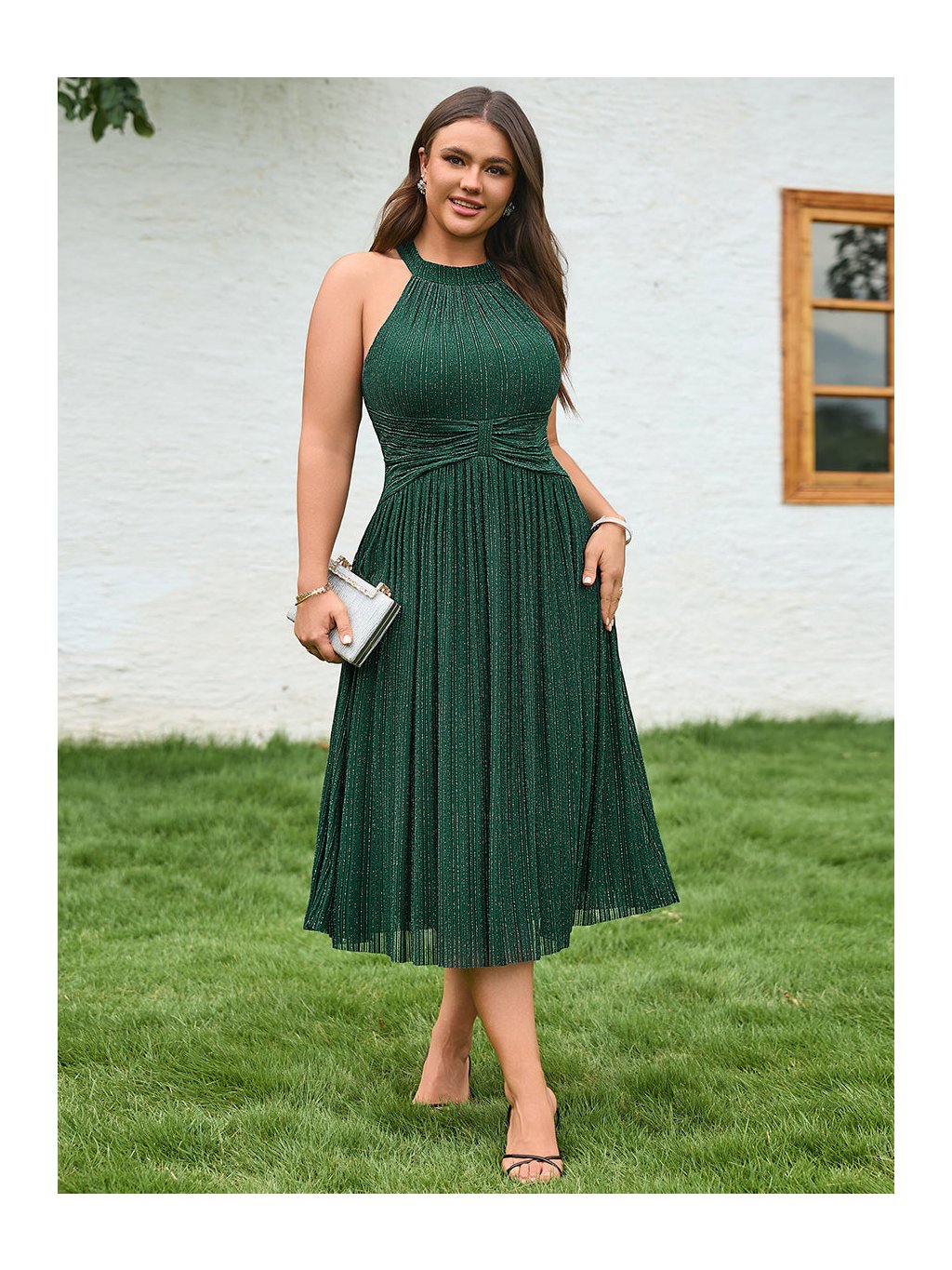 Plisované zelené šaty pro svatební hosty s halter výstřihem