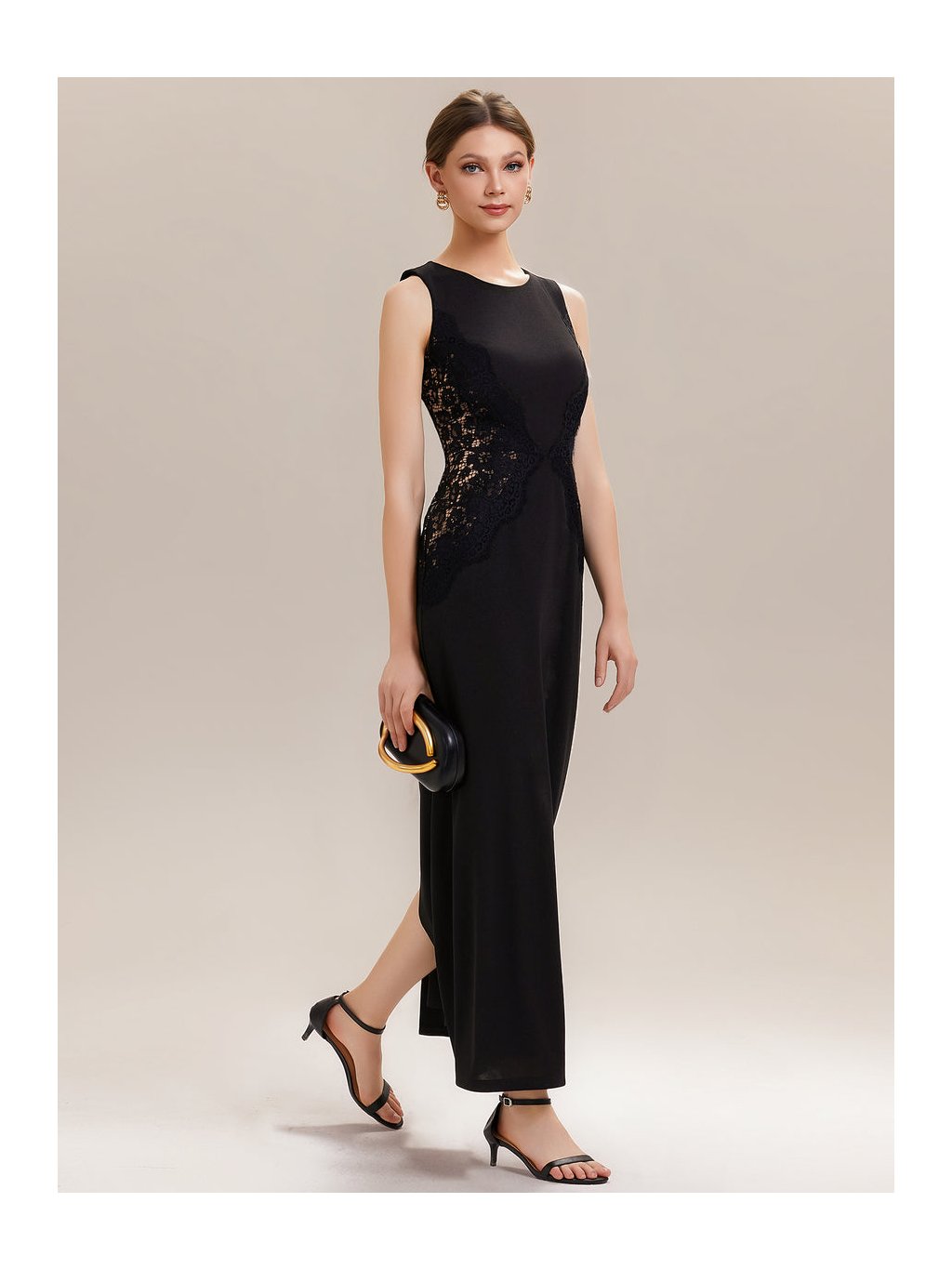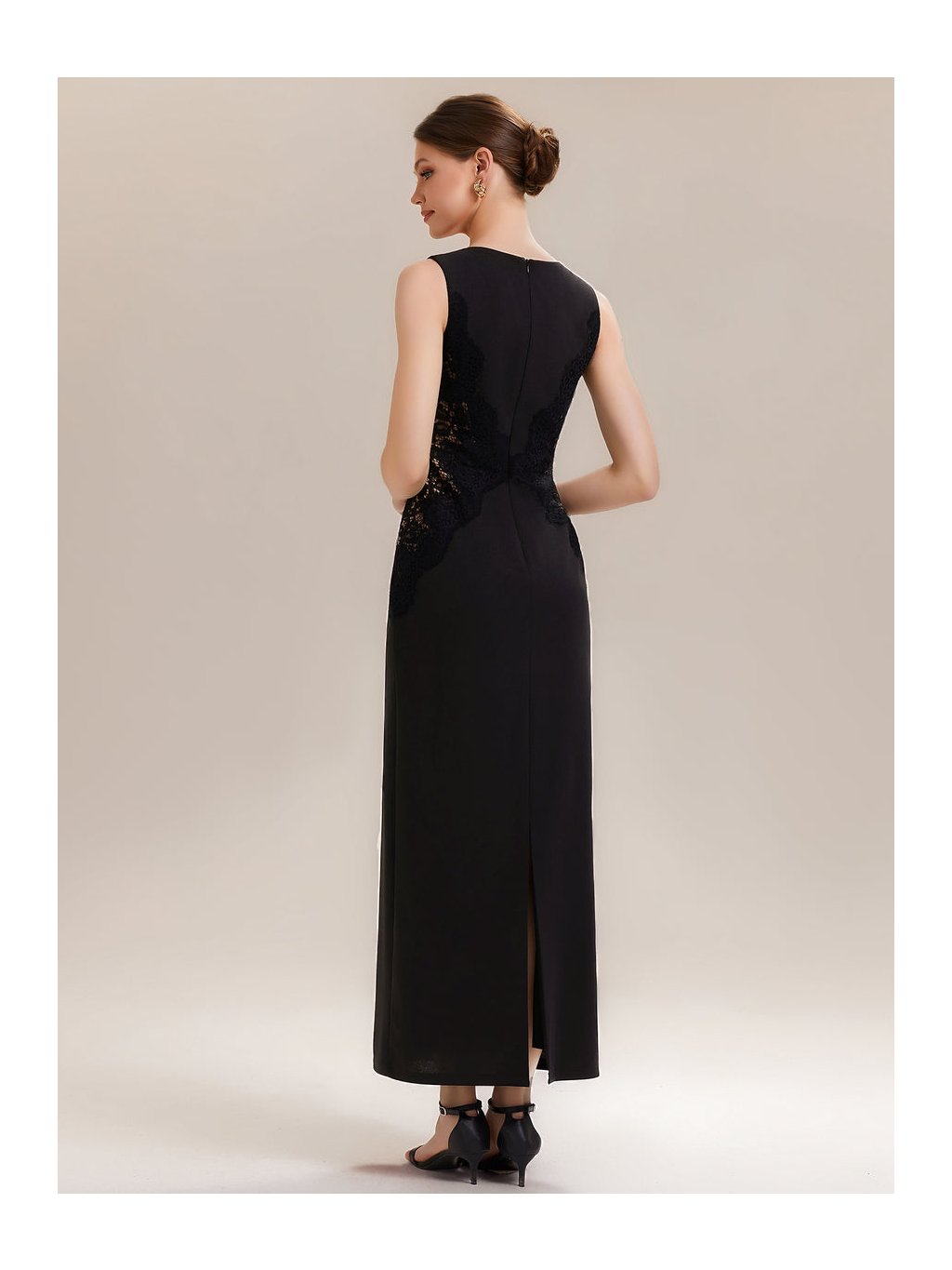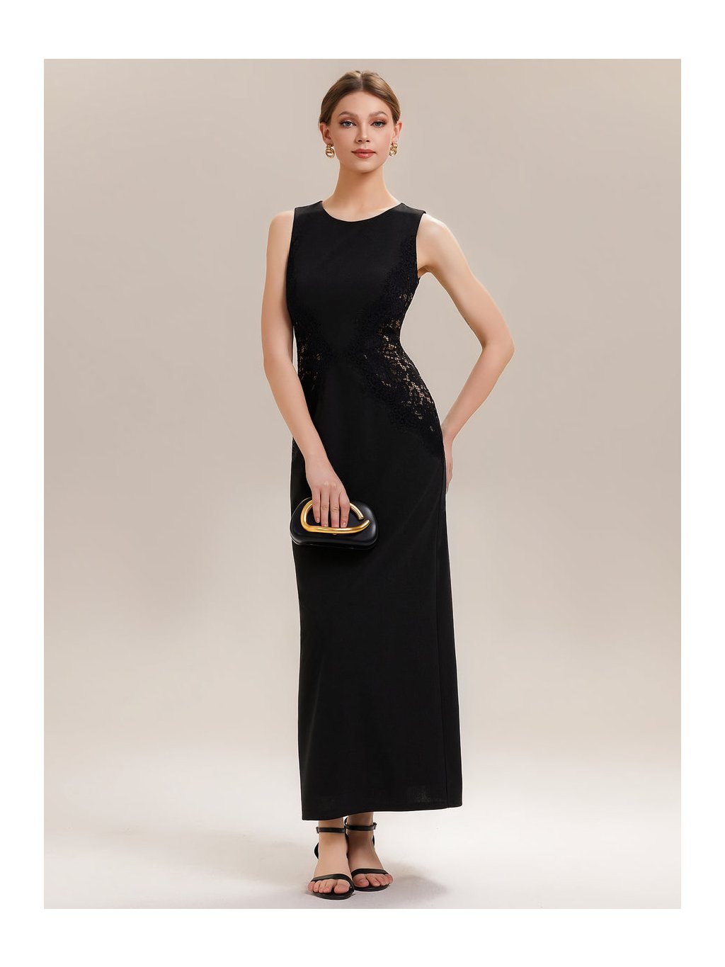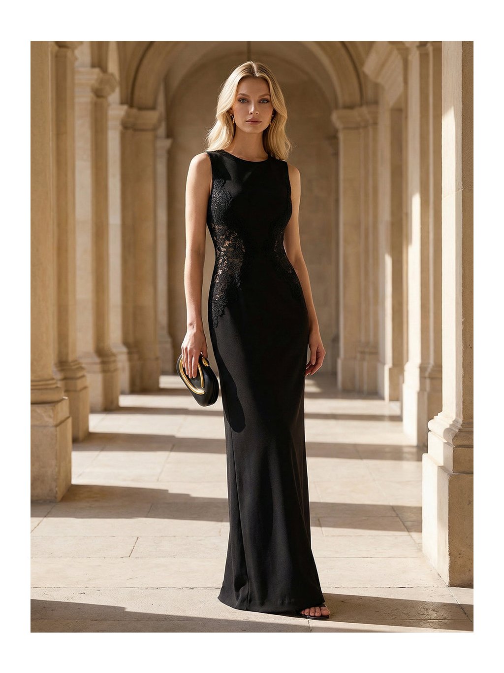 Tyto černé večerní šaty staví na kontrastu jednoduchosti a detailu. Na první pohled zaujmou čistou linií a minimalistickým střihem, který nechává vyniknout samotnou postavu. Jemná krajková aplikace po stranách působí nenápadně, ale chytře – opticky zeštíhluje pas a dodává modelu ženskou hloubku bez zbytečné zdobnosti. Přiléhavý střih plynule přechází do dlouhé sukně, která se elegantně pohybuje s každým krokem, zadní rozparek přitom přidává lehkost i komfort při chůzi. Šaty jsou ideální volbou pro ženy, které chtějí působit sebevědomě, uhlazeně a stylově na formálních večerech, galavečerech či slavnostních společenských událostech.