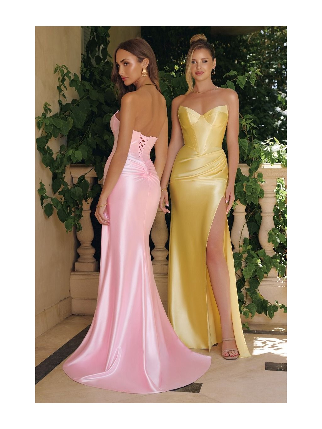 Tyto růžové saténové šaty působí jako z červeného koberce – hladké, lesklé a dokonale vytvarované. Korzetový živůtek kreslí siluetu do přesýpacích hodin a dává vyniknout dekoltu. Satén se při chůzi jemně vlní a spolu s vysokým rozparkem vytváří efektní pohyb, který upoutá pozornost při každém kroku. Šněrování na zádech není jen dekorace, ale způsob, jak docílit střihu, který sedí přesně tam, kde má. Tento model patří na svatby, maturitní plesy a galavečery.