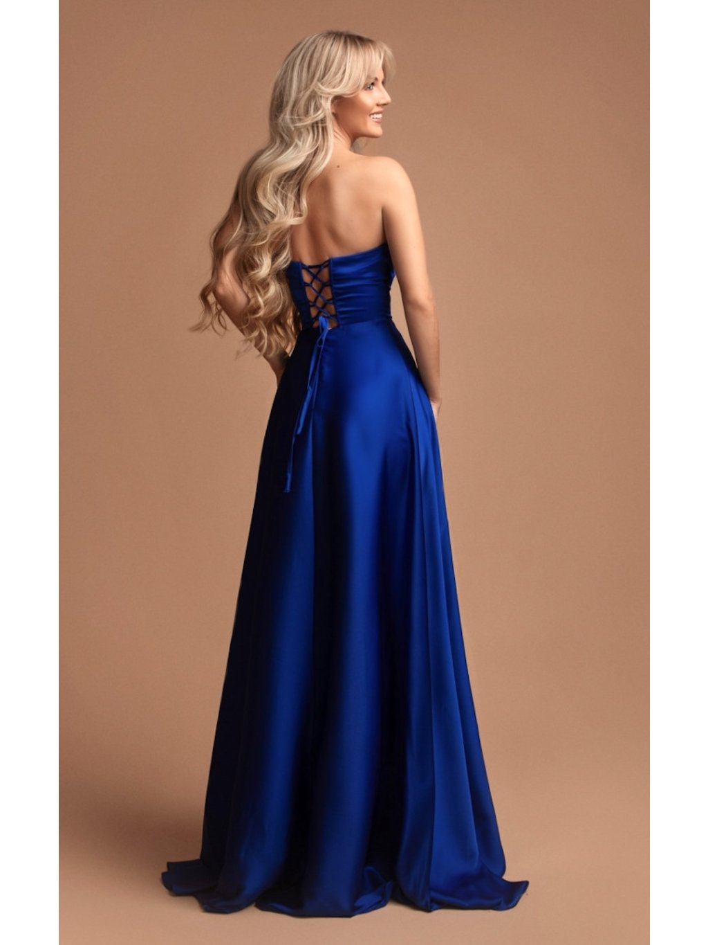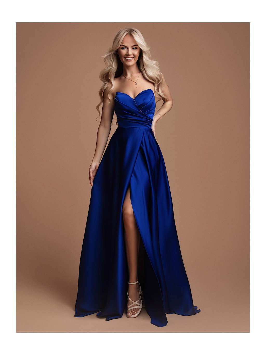 Maturitní šaty korzetového střihu v modré barvě s rozparkem jsou ideální volbou, pokud dáváte přednost jednoduchosti před bohatými sukněmi. Tyto elegantní šaty zaujmou svým elegantním střihem, živůtkem jemně lemovaným korálky a decentním skrytým rozparkem.