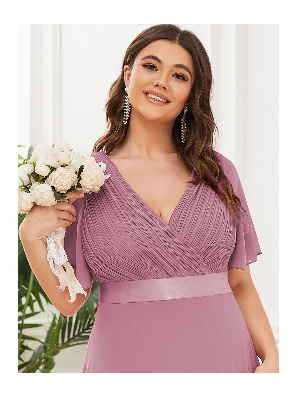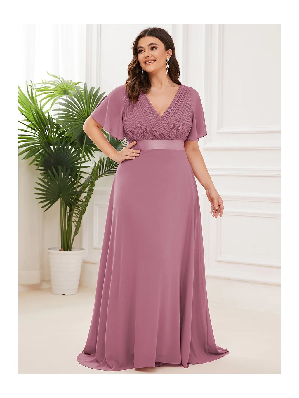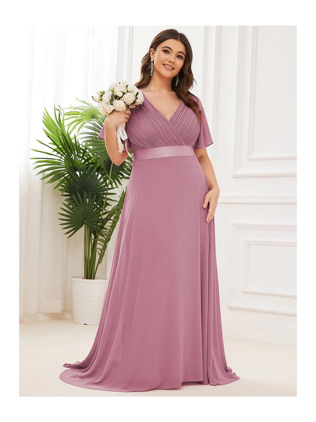 Tyto šaty v jemném odstínu lila jsou jako stvořené pro výjimečné příležitosti. Hluboký výstřih do V s jemným řasením působí velmi žensky a lichotivě, lehké rukávy působí vzdušně a elegantně. Saténový pásek krásně zvýrazní pas a splývavá sukně se při chůzi lehce vlní. Ideální volba pro každou ženu, která chce vyniknout s přirozenou lehkostí a šarmem.