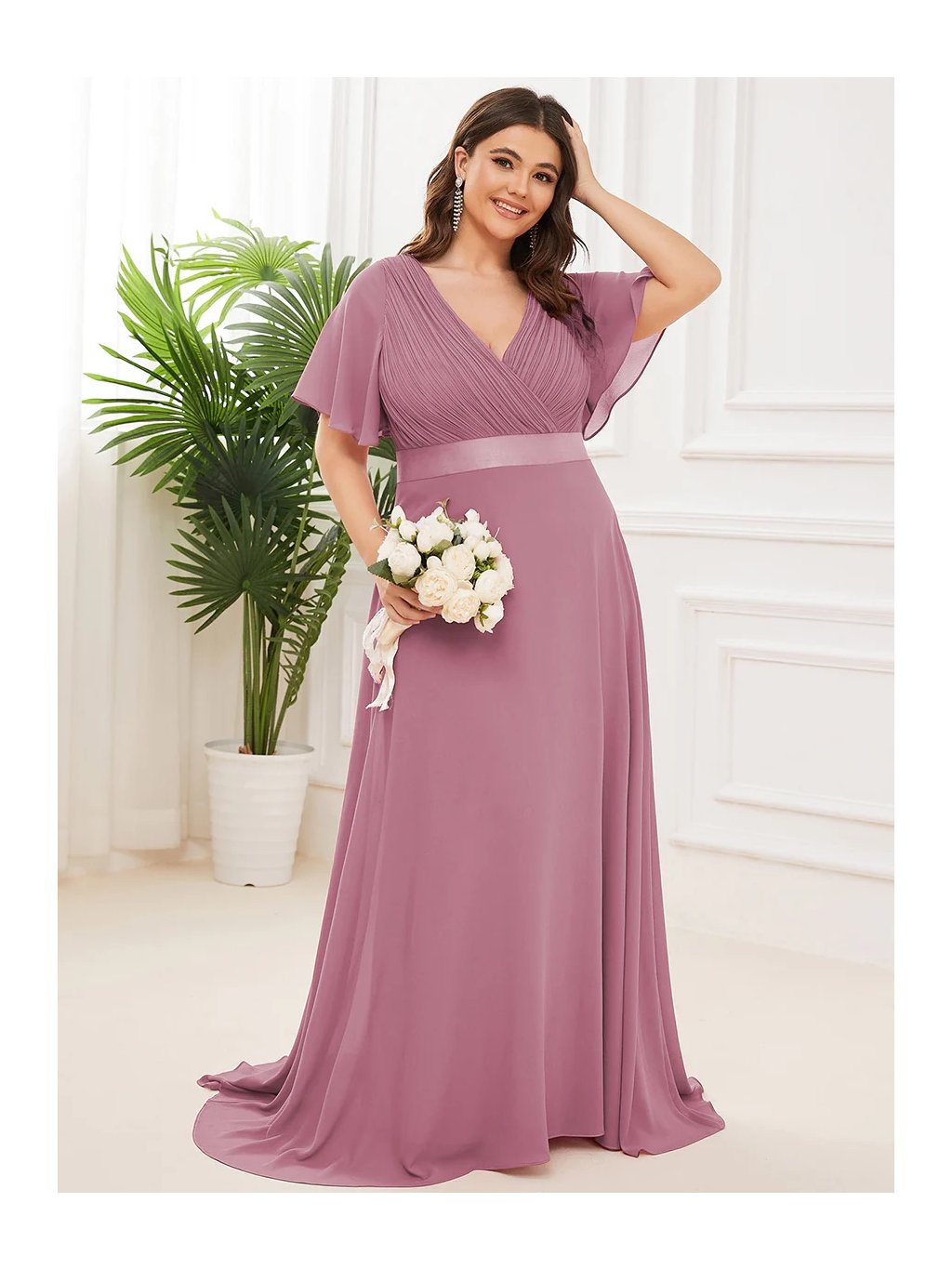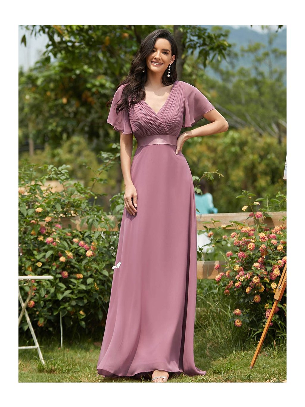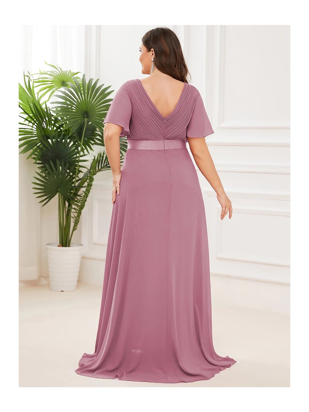 Tyto šaty v jemném odstínu lila jsou jako stvořené pro výjimečné příležitosti. Hluboký výstřih do V s jemným řasením působí velmi žensky a lichotivě, lehké rukávy působí vzdušně a elegantně. Saténový pásek krásně zvýrazní pas a splývavá sukně se při chůzi lehce vlní. Ideální volba pro každou ženu, která chce vyniknout s přirozenou lehkostí a šarmem.