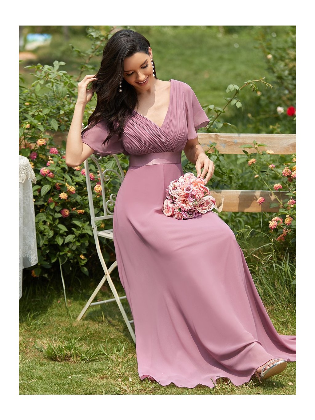 Šaty pro svatební družičky a hosty s rukávkem