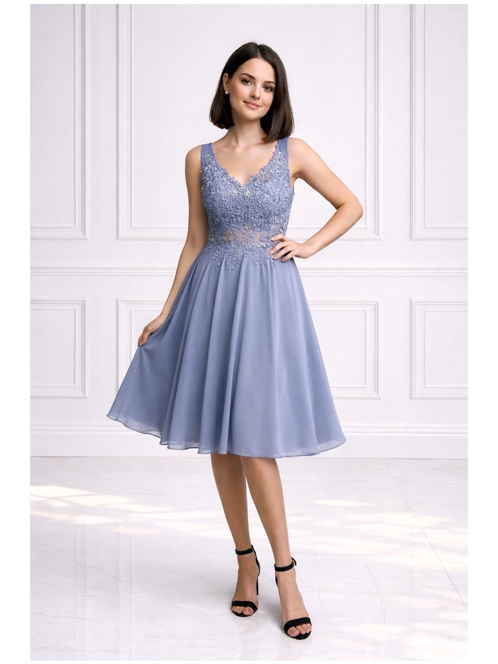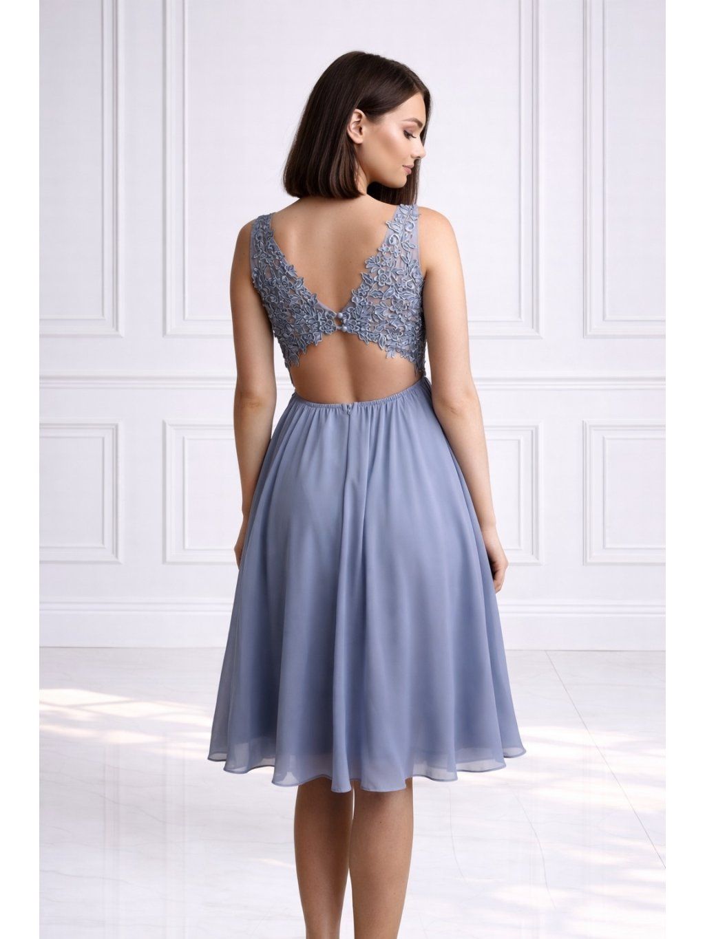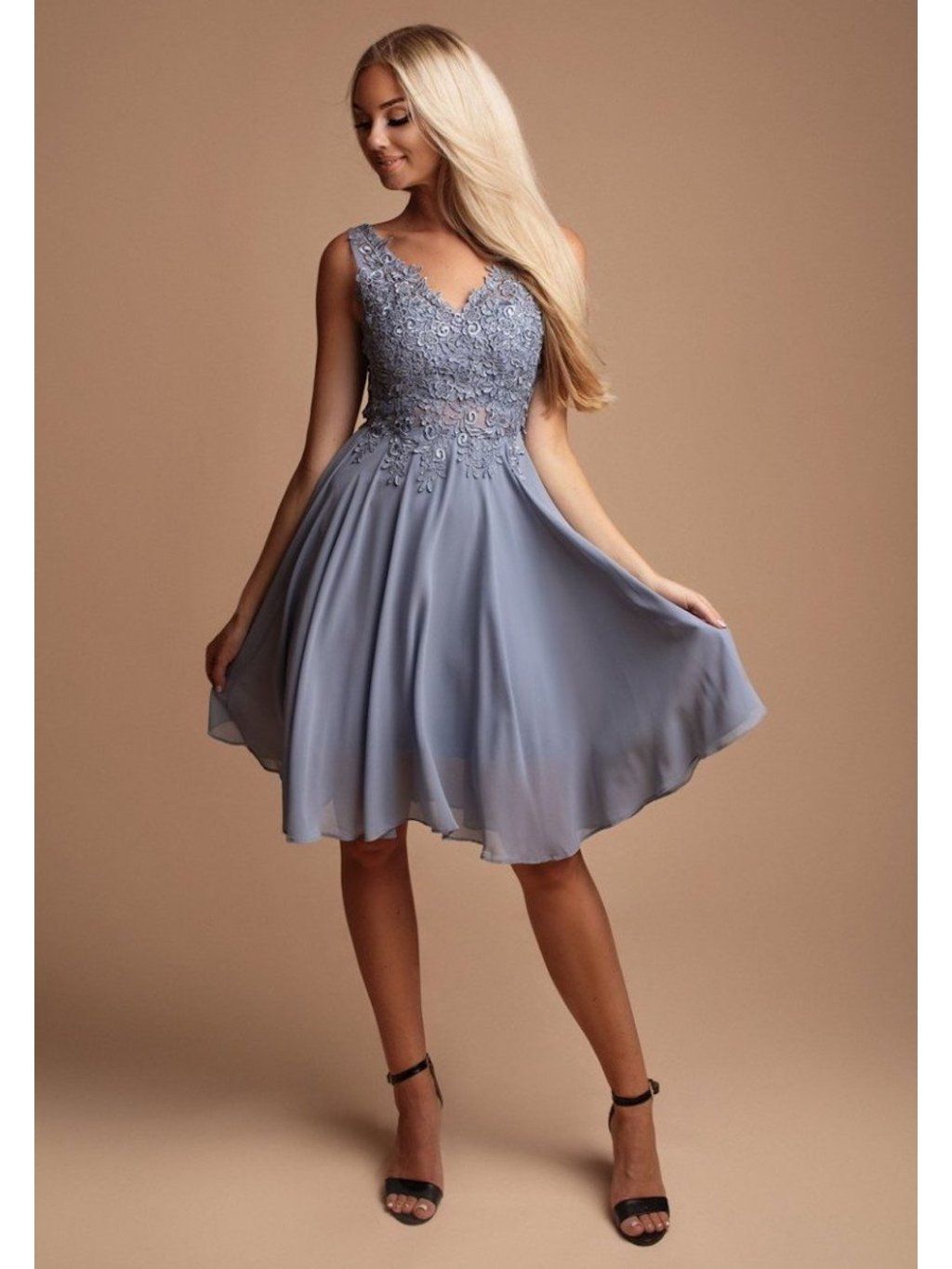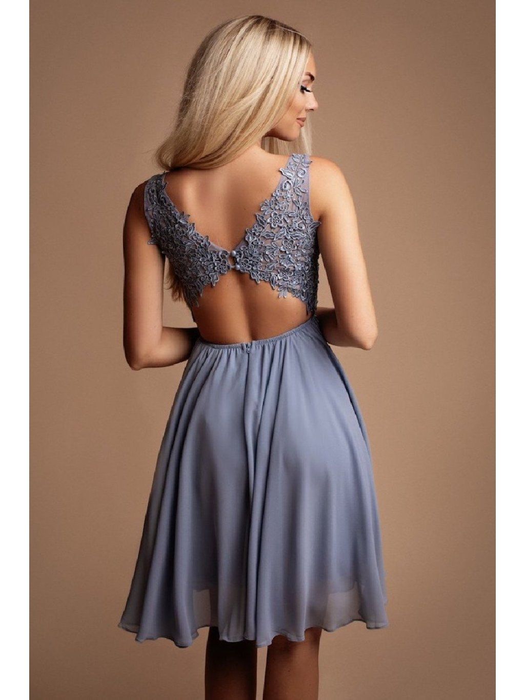 Šedomodré koktejlové šaty