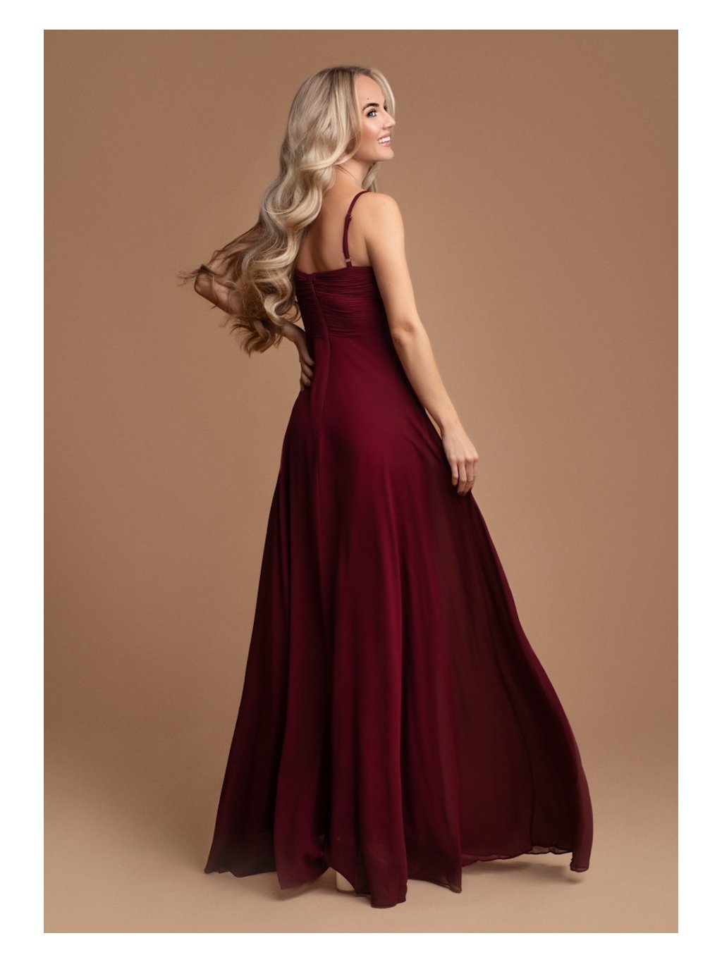 Šifonové vínové šaty s rozparkem vhodné pro družičky