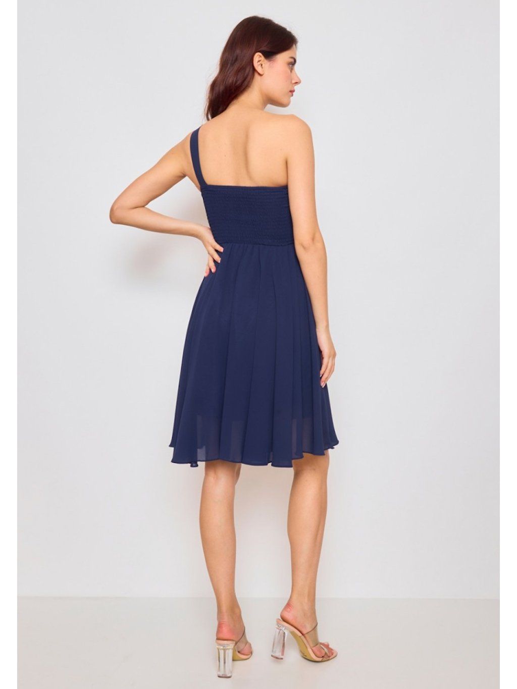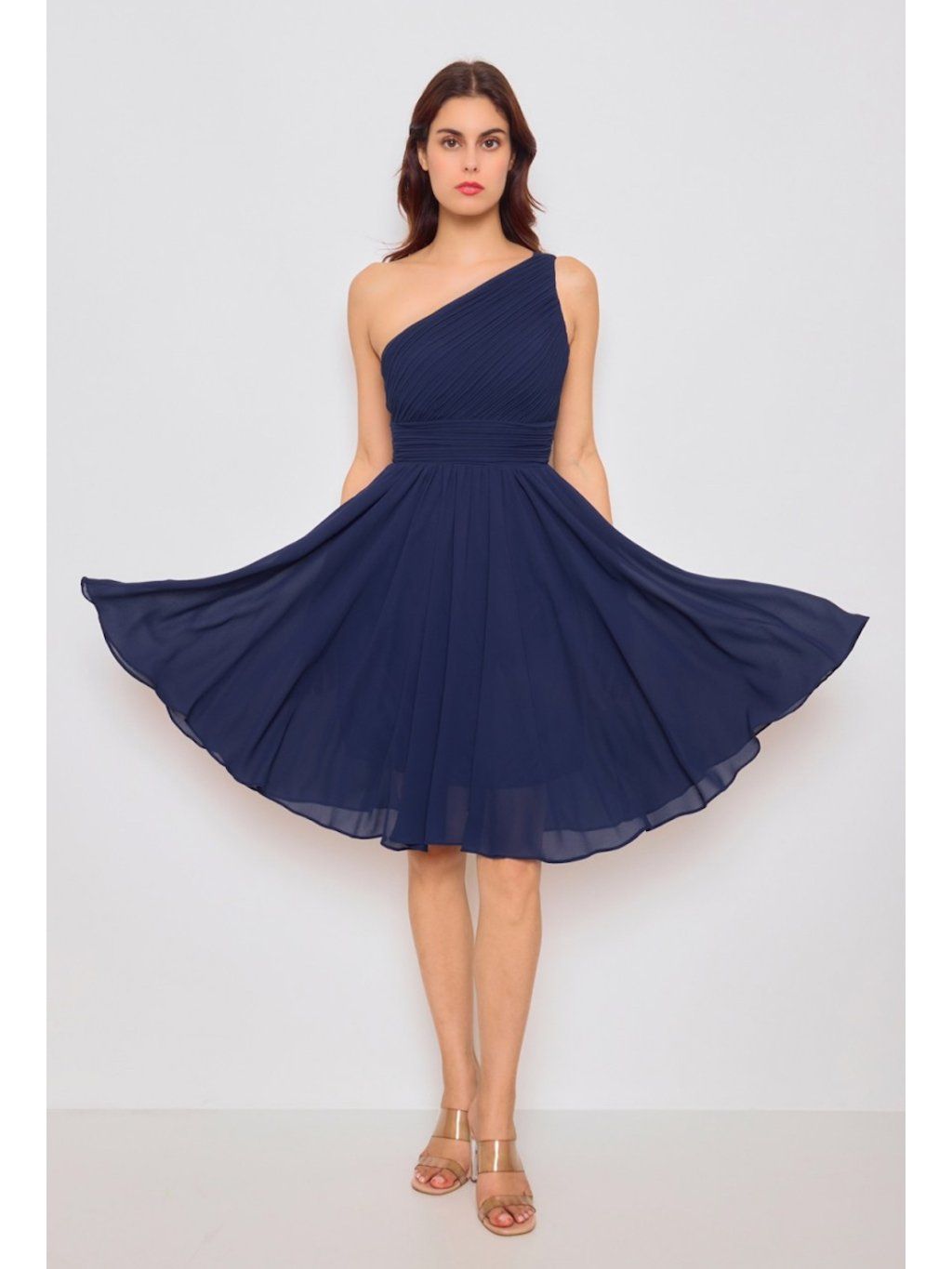 Asymetrické šaty na jedno rameno jsou jako stvořené do tanečních , ples, ale i na letní zahradní párty nebo na svatbu. Šaty skvěle padnou díky žabičkování na zádech a mají prsní vycpávky.