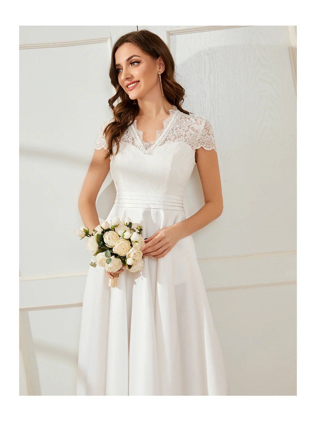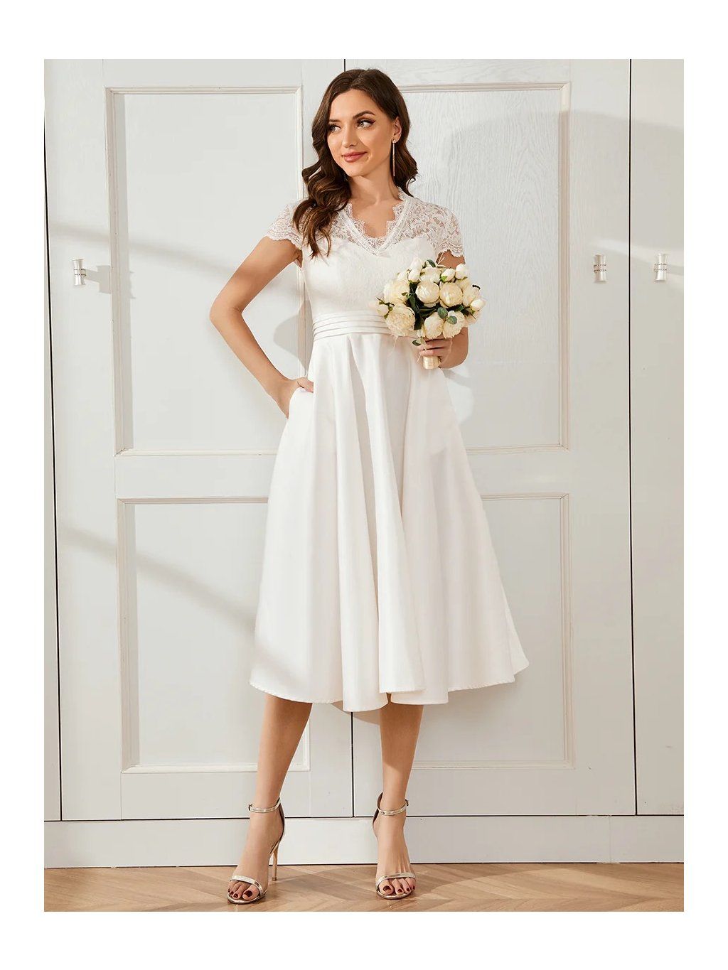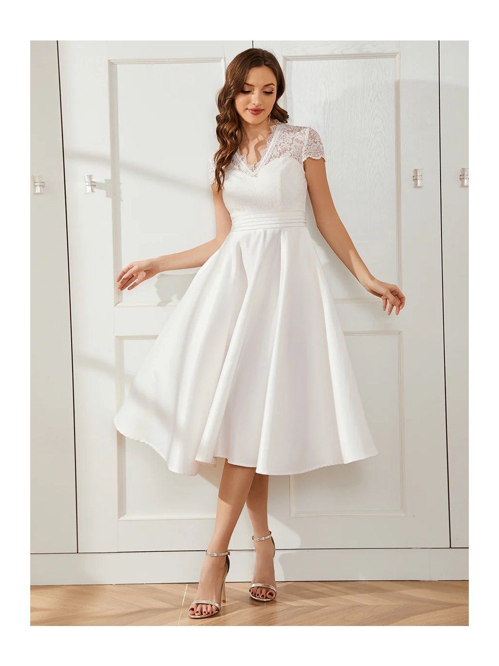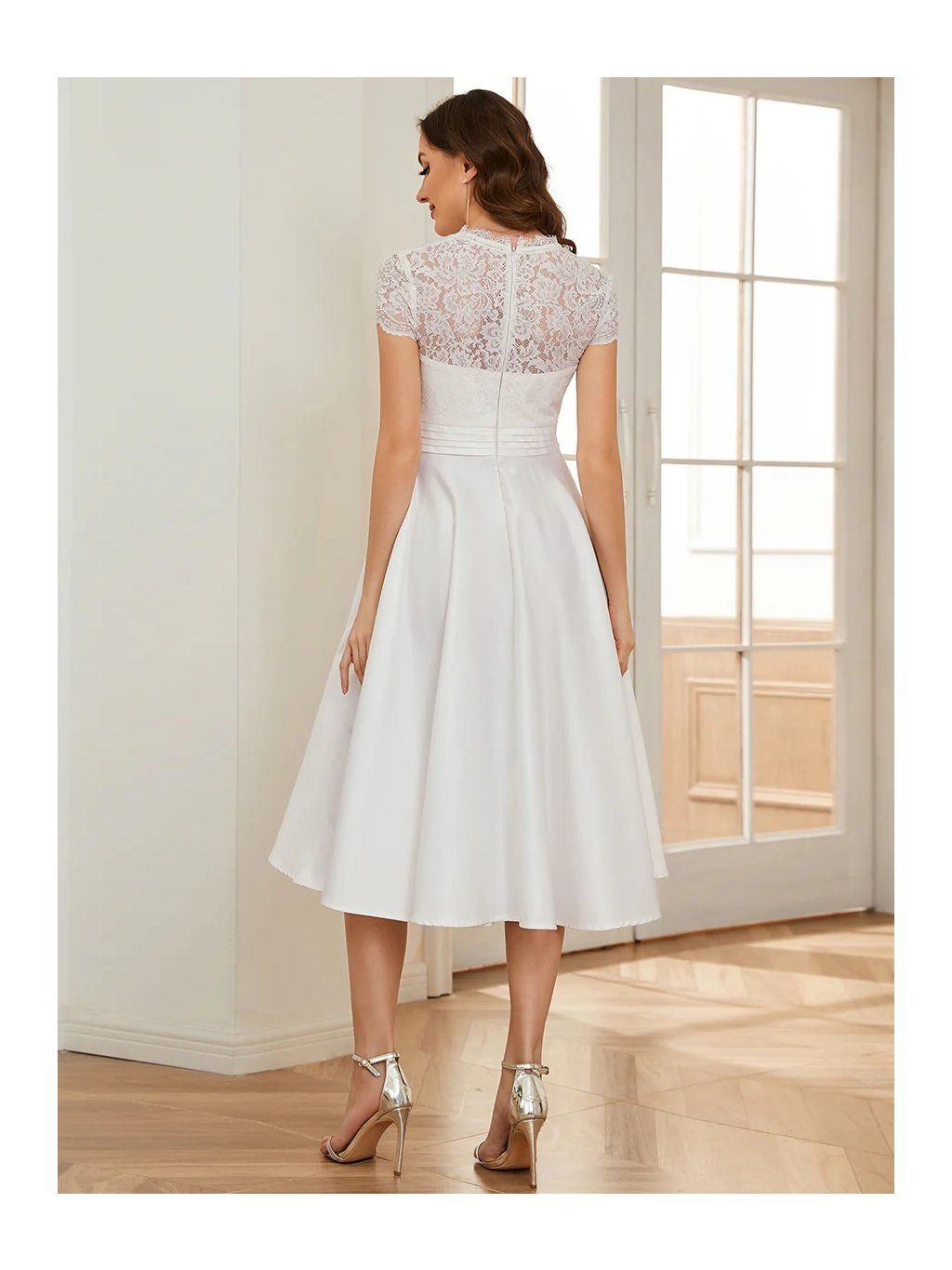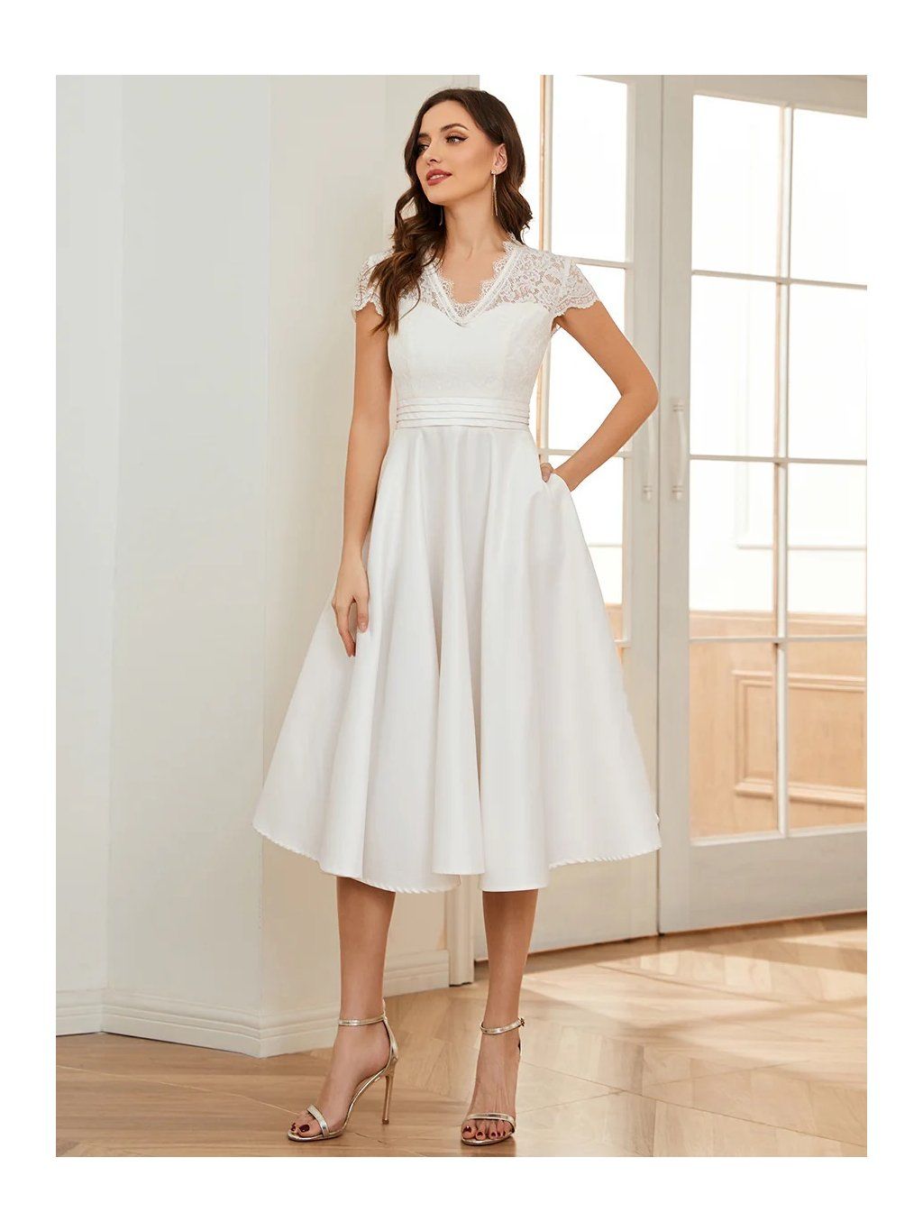 Elegantní krémově bílé šaty s praktickou kapsou, krátkým rukávem a sukní v midi délce jsou ideální volbou pro nevěsty. Jejich stylový design a pohodlný střih Vám umožní být vkusně oděná a přitom se cítit pohodlně během celého slavnostního dne.