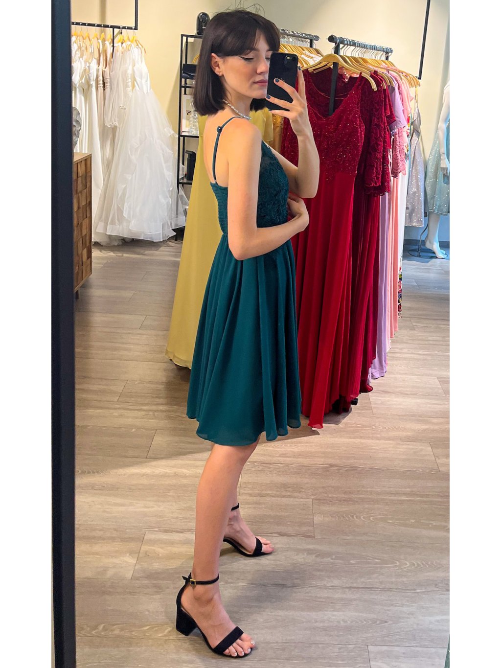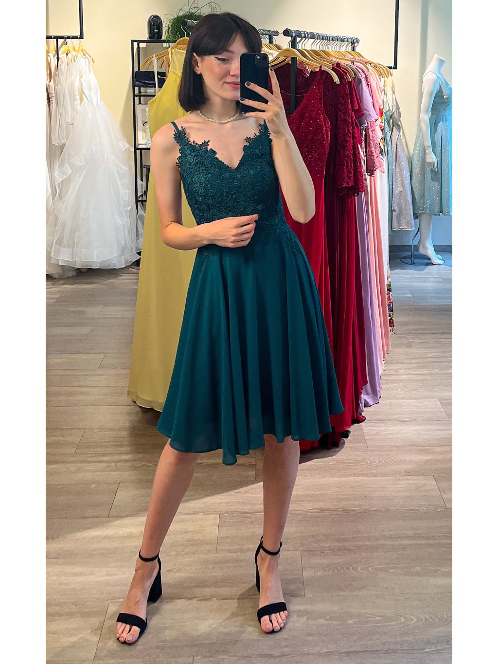 Šaty s krajkovým živůtkem a kolovou sukní, jsou jako stvořené do tanečních, ples, ale i na párty nebo pro družičky na svatbu. Šaty mají odhalená záda a prsní vycpávky.
